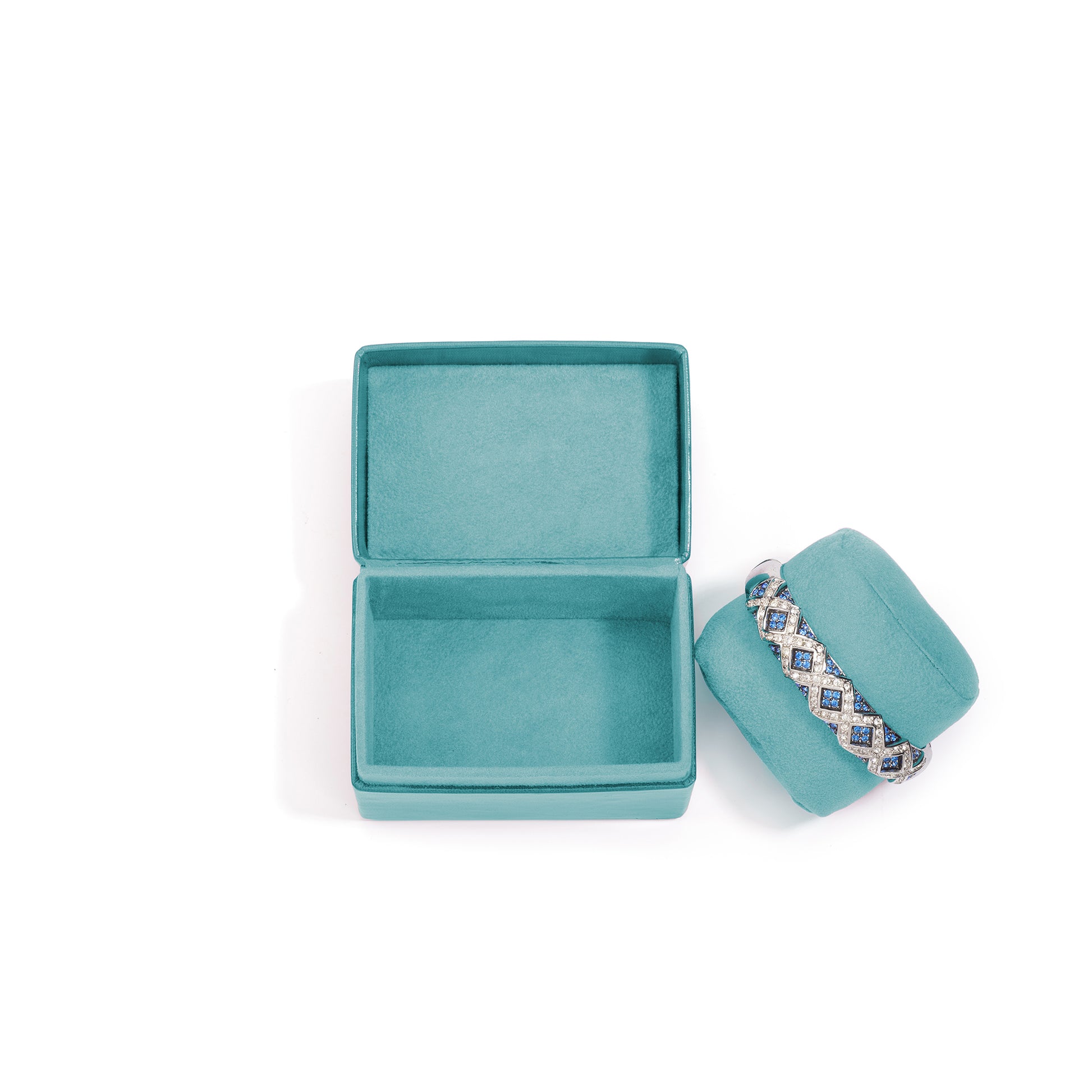 Present your cuffs and bangles with elevated luxury in our premium aqua cuff box. Thoughtfully designed with a plush oval wedge pillow, this box ensures secure and sophisticated presentation—perfect for proposals, anniversaries, or upscale gifting.